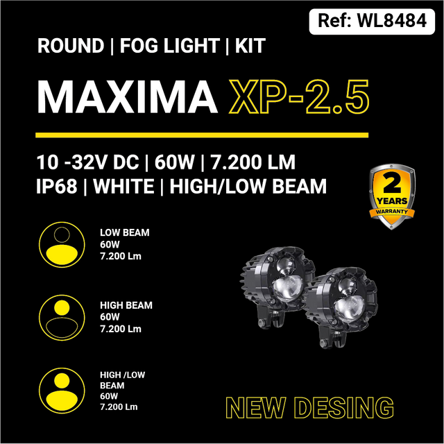 Prepárate para dominar la oscuridad con la nueva MAXIMA XP‑2.5, nuestro modelo más potente de exploradoras LED para motocicletas. Diseñadas para ofrecer un rendimiento superior en condiciones extremas, las XP-4 integran tecnología BI-FOCAL con haces de luz alta y baja, alcanzando un brillo de hasta 7.200 lúmenes reales en el set.